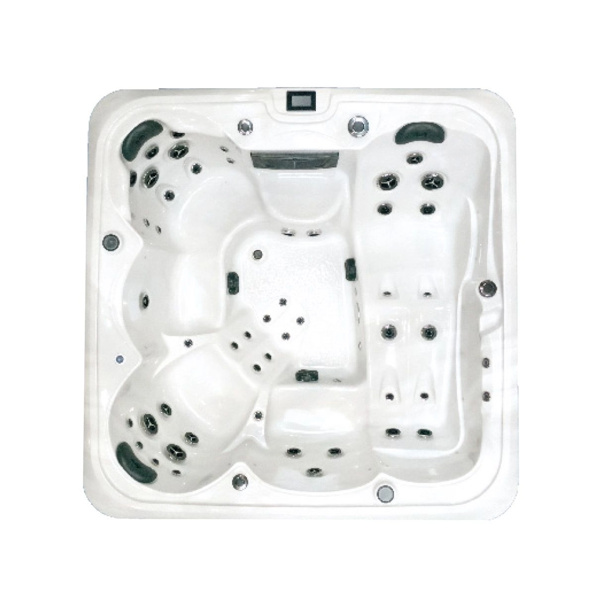 Le spa est équipé de 52 buses et de 5 jeux d’eau contrôlés par 2 airs control et 1 inverseur.