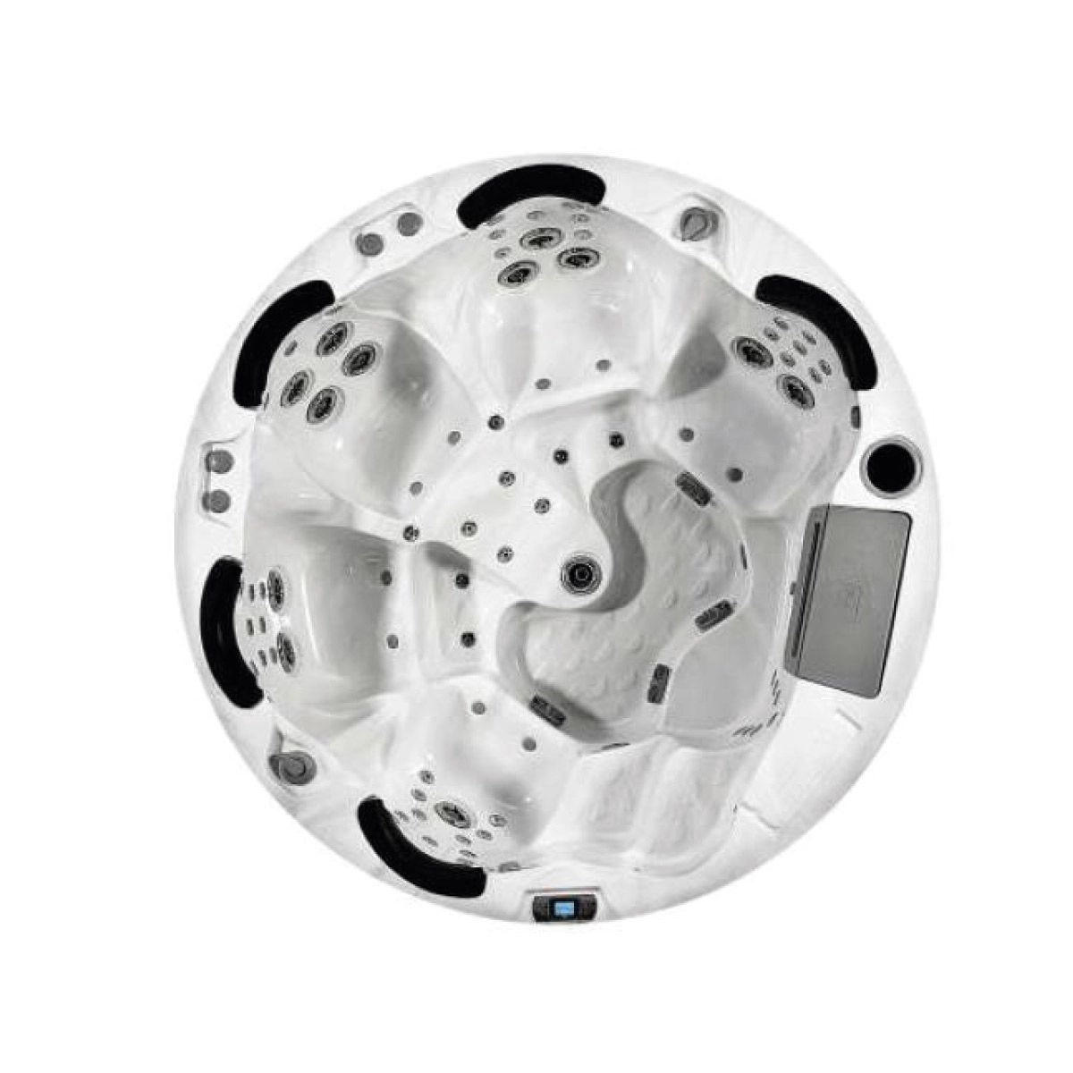 Le spa est Ă©quipĂ© de 71 buses et de 1 jeu d’eau contrĂ´lĂ© par 3 airs control et 2 inverseurs.
